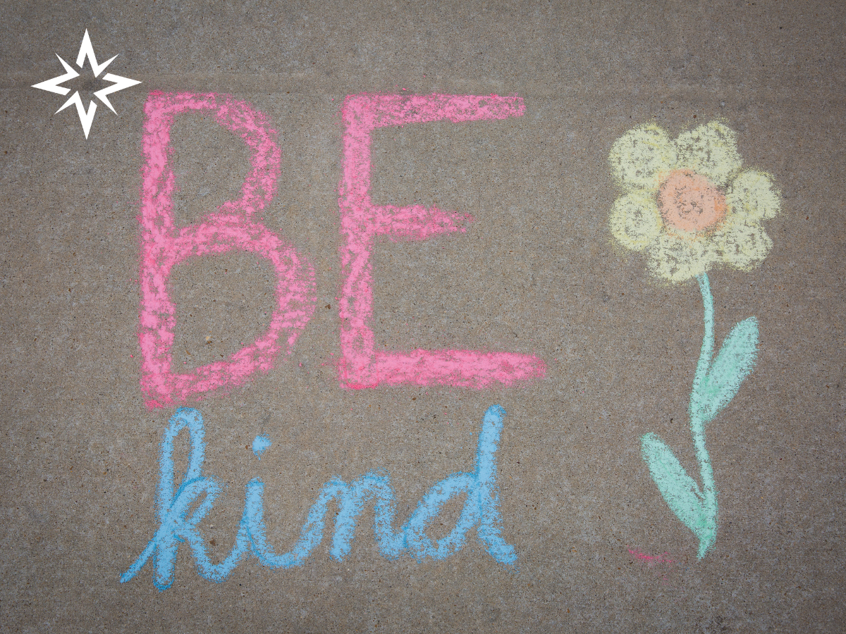 Be Kind words and a flower drawn with sidewalk chalk - temporary art by Charise Wilson Photography from Getty Images Created in Canva