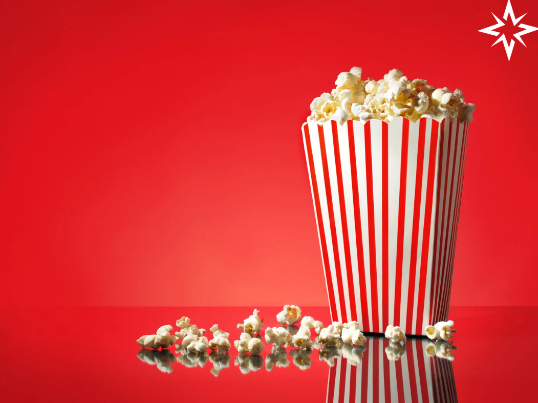 Movie Popcorn with 3D glasses Sitting on a Red Background by stephanie phillips from Getty Images Signature Created in Canva