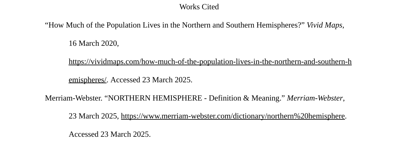 Compared to the Northern Hemisphere, the Southern Hemisphere is home to only around thirteen percent of the human population (“How Much of the Population”). The Southern Hemisphere has a much smaller land-to-water ratio, and some land is uninhabitable due to freezing temperatures. This includes the enormous continent of Antarctica, which has no permanent population. Despite these factors, two respondents live in the Southern Hemisphere.